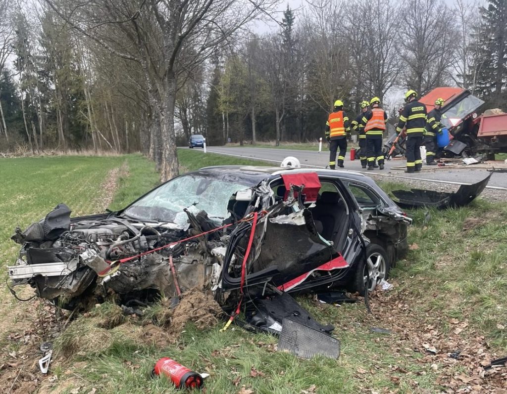 „Podle prvotních informací jel řidič (roč. 2002) ve vozidle značky Audi a měl předjíždět jiné vozidlo. Následně došlo ke střetu s traktorem s valníkem, který jel v opačném směru. Řidič na valníku vezl bagr. Náraz byl tak silný, že došlo k uražení kola traktoru i valníku,“ popsala mluvčí policie Štěpánka Schwarzová.