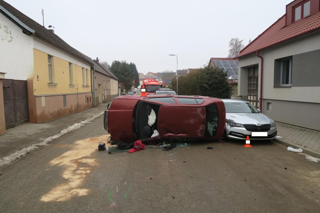 Řidič dostal v Lišově smyk, auto skončilo na boku. Muž v sobě měl přes dvě promile alkoholu