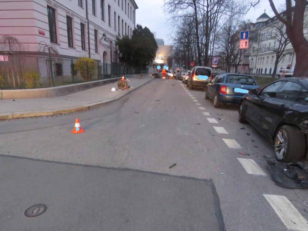 ČESKÉ BUDĚJOVICE – Hned čtyři auta byla poškozena při dopravní nehodě v ulici Vrchlického nábřeží v Českých Budějovicích, kdy se celková škoda vyšplhala přes půl milionu korun. Policisté začali událost vyšetřovat v pondělí 28. března brzy ráno. Zjistili, že řidič osobního vozu Mercedes Benz C 350 v době kolem páté hodiny ráno zřejmě nepřizpůsobil rychlost jízdy svým schopnostem, stavu a profilu komunikace a v jednosměrné ulici naboural do tří zaparkovaných vozidel, a to BMW 420 D, Honda Civic a Volkswagen Tiguan. „Přitom ještě porazil sloupek dopravních značení. Poté zatím neznámý řidič z místa utekl. Způsobená škoda byla předběžné stanovena na více než 520 tisíc korun,“ upřesnil policejní mluvčí Milan Bajcura.