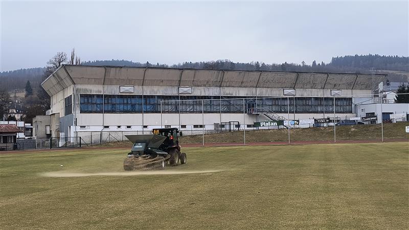 V uplynulých dnech došlo k provzdušnění povrchu fotbalového hřiště, během kterého se odstranila stará tráva. Následovalo pískování pro vyrovnání nerovností a hned poté vertikutace. „Nože vertikutátoru prořezají drn, čímž ke kořenům lépe proniká vzduch, voda a živiny, což podporuje růst nového trávníku a zvyšuje jeho hustotu,“ vysvětlil mluvčí města Vimperk Milan Brabec. Ve fotbalových šatnách došlo k výměně dvou ohřívačů vody a také elektroinstalace. První fotbalové zápasy v letošním roce odehrál Šumavan už v neděli 22. března proti Milevsku.