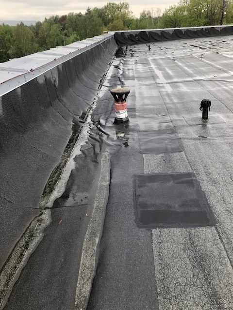 Stávající stav střešní krytiny je už za svojí životností a do sportovní haly na několika místech významně zatéká. Vlivem zatékání dochází k absorpci vody v prostoru zateplení střešního pláště a tím se zvyšuje zatížení střešní konstrukce. To může mít neblahý vliv na celkový stav střešní konstrukce.