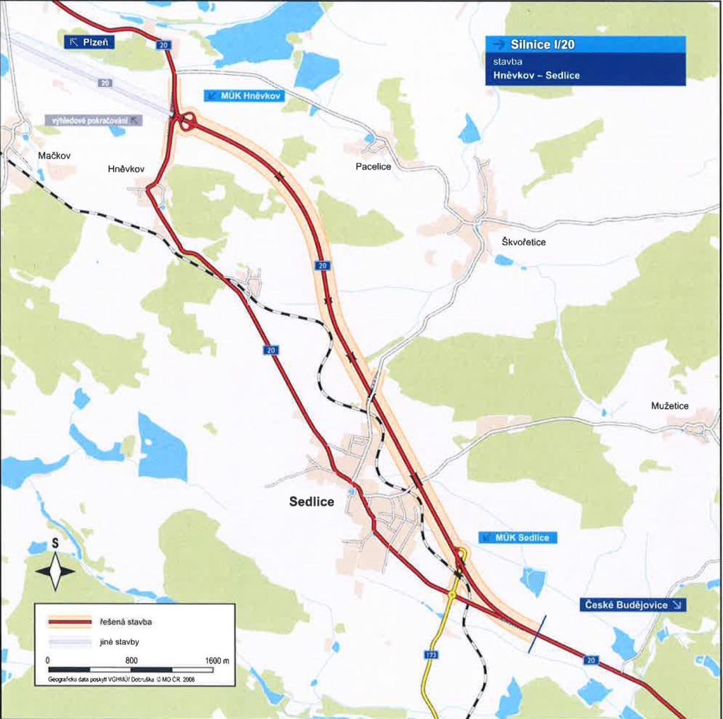 Ředitelství silnic a dálnic popisuje, že silnice procházející obcemi Hněvkov a Sedlice má v tomto úseku nevyhovující směrové a výškové vedení. „V lokálních místech se pak také průjezdní profil silnice zužuje, a to kvůli vzrostlým stromům v bezprostřední blízkosti vozovky. Dalším nevyhovujícím prvkem jsou také železniční přejezdy, které se na trase nacházejí. Stavba zhruba 6,6 kilometru dlouhé přeložky stávající komunikace by pak měla všechna tato závadná místa odstranit. Odvede tranzitní dopravu mimo průtahy obcí, zlepší parametry komunikace a sníží tak hlukové a emisní zatížení,“ uvádí ŘSD.