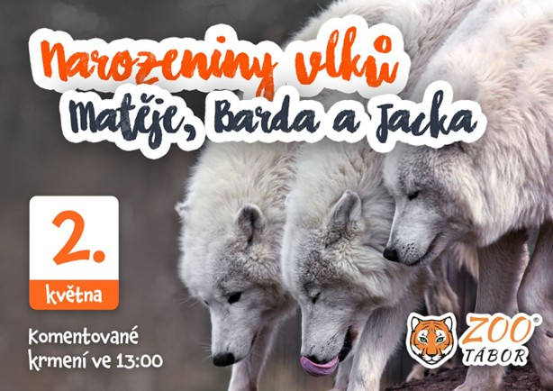 „Pokud jim chcete také popřát, přijďte do zoo v sobotu 2. května. Speciální narozeninové komentované krmení začne v jednu hodinu po poledni. Naši vlci arktičtí patří mezi návštěvníky k nejoblíbenějším zvířatům V rozhlehlém výběhu je však ne vždy mohou spatřit. Sobotní narozeninové komentované krmení je tak skvělou příležitostí vidět je na vlastní oči, a navíc pěkně zblízka. Nejen, že si užijete jejich přítomnost, ale dozvíte se i spoustu zajímavostí z jejich života,“ zve mluvčí ZOO Tábor Filip Sušanka.