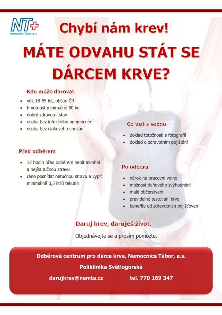 Táborské nemocnici chybí krev. Přijďte darovat, vyzývá