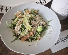 Lehký a sytý salát, který kombinuje chuť uzeného lososa, krémového avokáda a výrazného parmazánu. Rukola dodá příjemnou pikantnost a slunečnicová semínka křupavý kontrast. Ideální volba pro rychlý oběd nebo večeři bez zbytečných složitostí.