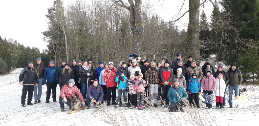 K poslednímu bodu tak musela výprava vystoupat ještě výše, kolem lesního kamene s údajnou vtlačenou stopou Panny Marie, ke zvláštně pokroucené věkovité lípě, chránící Prokopů křížek. „Vybodoval jej místní lhotecký hospodář, aby se mu syn ve zdraví vrátil z první světové války. Bohužel, ne všechny příběhy mají šťastný konec. Poslední krásné výhledy do údolí s volenickým kostelem v dáli a sněhoví andělíčkové, předznamenaly sestup kolem lesa na lhoteckou náves, kde pomníček pod lipami připomíná i nešťastného Prokopa. Pochod končil, díky obětavosti a šikovnosti lhoteckých sousedů, posezením u ohně, špekáčků, vánočního cukroví, štrůdlu, čaje, rumu, zelené a vůbec. Známí se pozdravili, zavzpomínali na bezstarostné bezpečné dětství, zkonstatovali, jak ten čas letí a potom vyvětraní, s novými zážitky a s vědomím, že lidé se musí potkávat, mluvit spolu a mít společné vzpomínky, se rozešli zpět do svých domovů,“ dodává Miroslav Šobr, starosta SDH Tažovice.