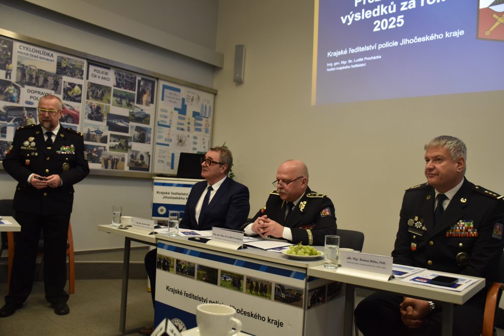 JIŽNÍ ČECHY – Jak se loni dařila práce jihočeským policistům, o tom informovali na výroční tiskové konferenci v Českých Budějovicích představitelé krajského ředitelství policie Jihočeského kraje. Ředitel Luděk Procházka řekl, že je na jihočeské policisty hrdý, protože během deseti let, kdy je ve funkci, byli v objasněnosti trestné činnosti mezi čtrnácti kraji pokaždé „na bedně.“