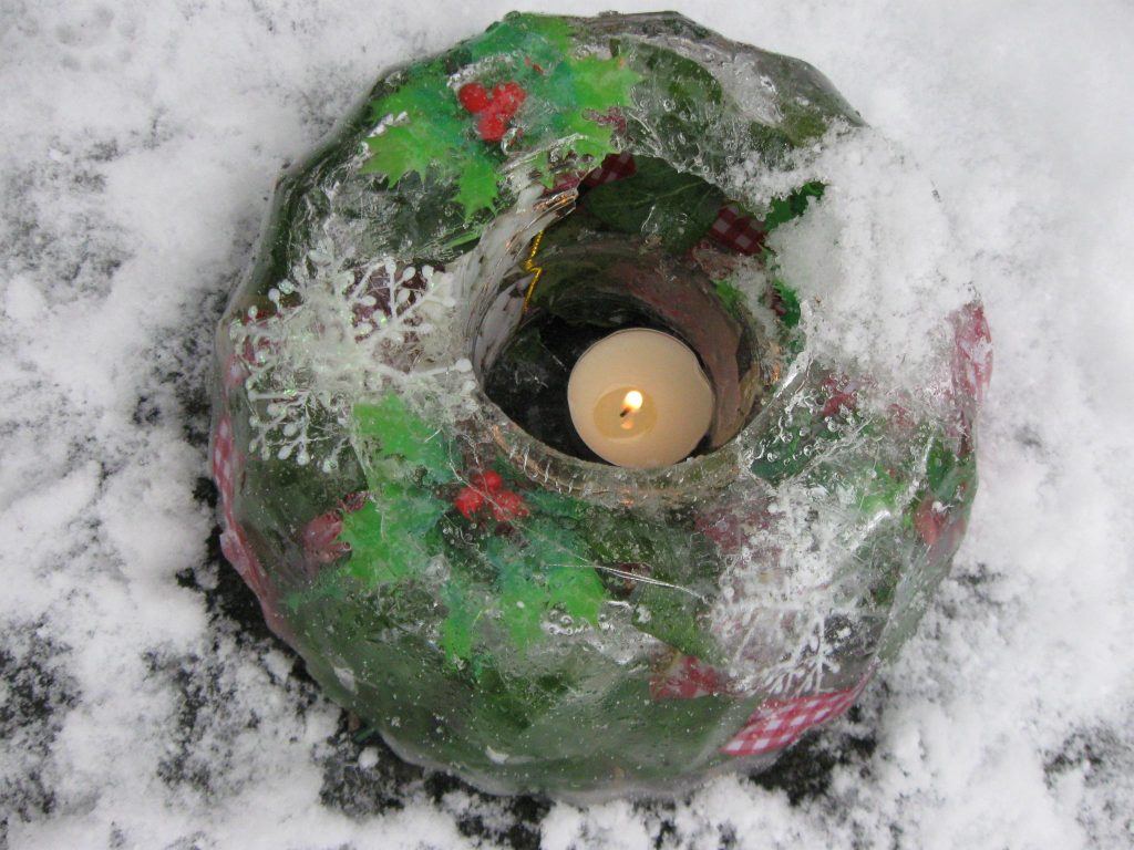 Když se voda promění na led, opatrně obsah vyklopíme a ozdobu umístíme tam, kde ji chceme mít.