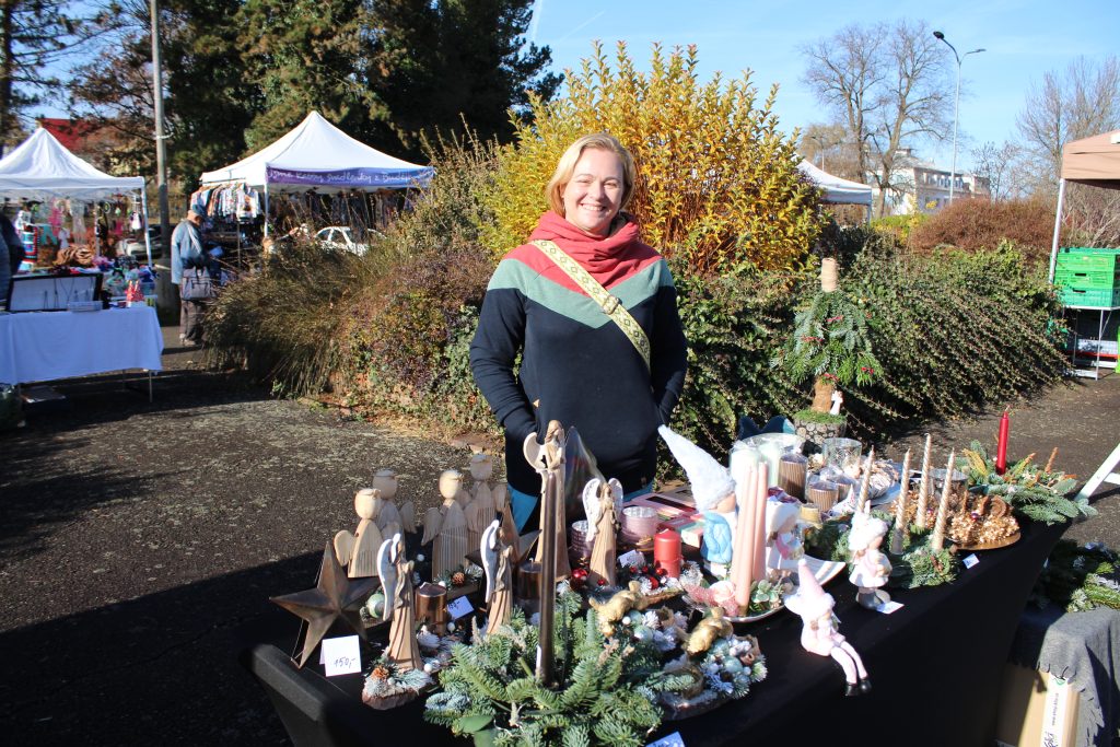 Stánek tu měla i Lenka Kněžínková Lapková ze Šindlových Dvorů. Přivezla vánoční dekorace, adventní věnce a svícny. „Jsem na mateřské se třetím synem, strašně hodným, proto jsem se do toho pustila. Tento rok jsem si udělala floristický kurz, tak se snažím dělat i kytky. Ale dekorace, to je moje celoživotní vášeň. To mám po mamince, která hodně háčkuje a plete. Rukodělné věci jsme dělaly od malička, tak k tomu inklinuji,“ popsala.
