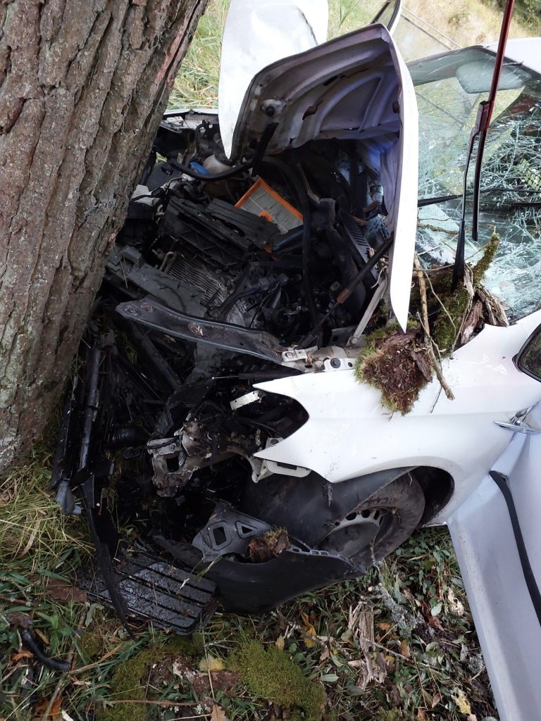 U Vyššího Brodu narazil řidič s autem do stromu. Další havárie uzavřela silnici mezi Chvalšinami a Smědčí