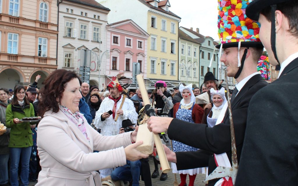 Na náměstí Přemysla Otakara II. se představí slaměná, růžičková, mečová i vařečková koleda. „Bude pěkně veselo. Už se samozřejmě moc těším na udělování povolení koledování, což je každoroční rituál na oko vážný, ale jinak plný smíchu a dobré nálady. Je třeba si všeho pěkně užít, protože druhý den už nastane Popeleční středa, která ukončí masopustní hodování a křesťanům začne čtyřicetidenní půst. Jeho smyslem je především duchovní očista před Velikonocemi, kdy se lidé zříkají masa a celkově jedí a chovají se ve všem střídmě, “říká primátorka Dagmar Škodová Parmová a všechny na náměstí srdečně zve.