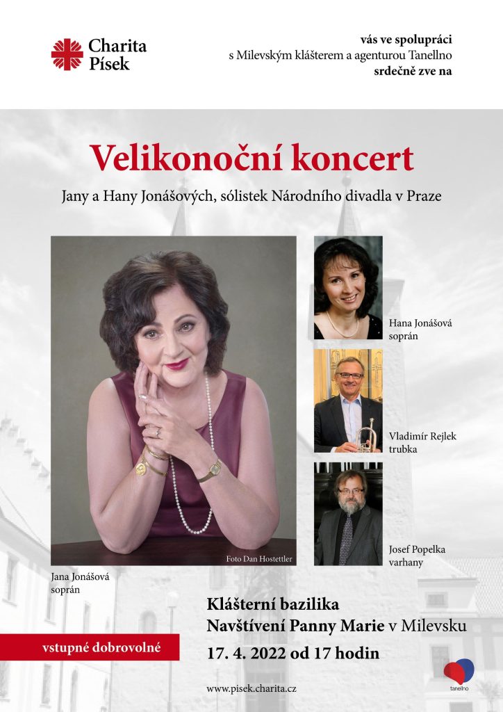 V Milevsku vystoupí společně s varhaníkem Josefem Popelkou a trumpetistou Vladimírem Rejlkem. Vstupné je dobrovolné a případný výtěžek poslouží k financování projektů Charity Písek, která spolu s milevský klášterem a agenturou Tenello koncert pořádá.