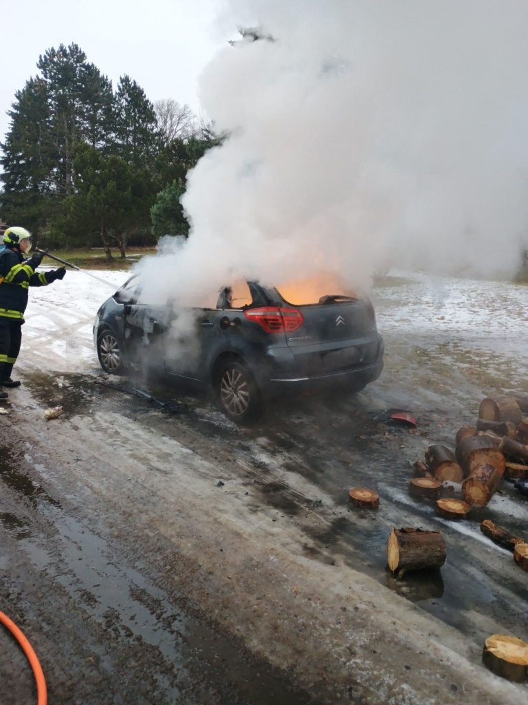 OLEŠNÁ – Profesionální hasiči z Písku a jednotka dobrovolných hasičů Podolí I vyjížděli ve středu 4. února krátce před polednem k požáru osobního auta do Olešné.