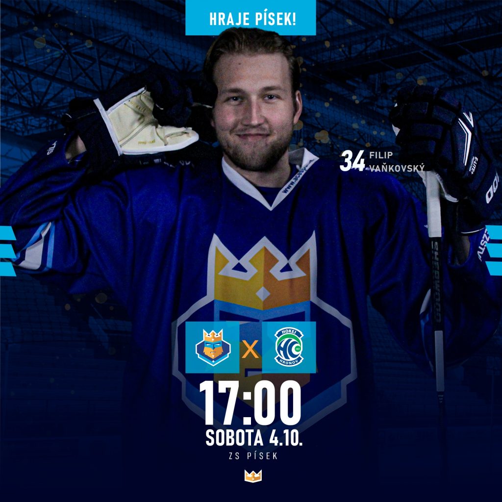 PÍSEK – Písečtí hokejisté z úvodních třech zápasů letošní sezony získali šest bodů. První říjnovou sobotu se svěřenci trenéra Jana Šuráně představí na domácím ledě, kde v rámci 4. kola přivítají Hronov. Celek trenéra Pavla Marka se loni pohyboval u čela tabulky, letos má zatím na kontě čtyři body. Přijďte podpořit písecké hokejisty, utkání začíná v 17 hodin.