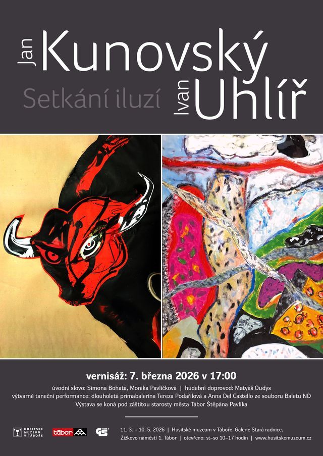 TÁBOR – V Galerii Staré radnice na Žižkově náměstí v Táboře se chystá nová výstava. Pod názvem Setkání iluzí nabídne umělecké setkání dvou známých jihočeských výtvarníků – Jana Kunovského a Ivana Uhlíře. Vernisáž se uskuteční v sobotu 7. března v 17 hodin a ozvláštní ji baletní performance.