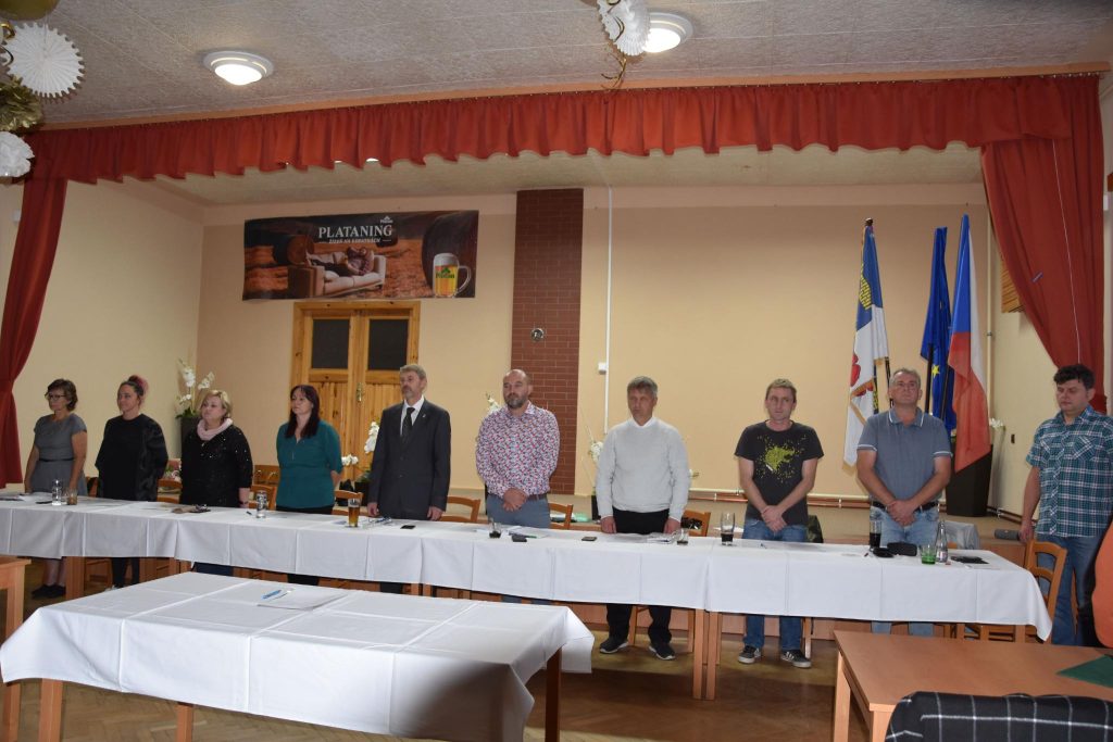 Zasedání v sále Stádlecké restaurace začalo krátce po 18. hodině státní hymnou a poté složením slibu všech devíti zvolených zastupitelů. Podívat se přišlo i dost občanů, místa v sále zaplnili.