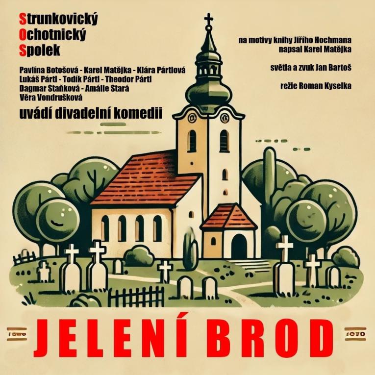 Strunkovický Ochotnický Spolek (S.O.S.), který vznikl v roce 2008 a navazuje na tradici předválečných i poválečných ochotníků, má na repertoáru komedii Jelení Brod, jejíž premiéra proběhla v kinosále ve Strunkovicích nad Blanicí v sobotu 5. dubna 2025. Soubor za dobu své existence vystřídal řadu titulů a především drží to hlavní, chuť dělat divadlo a bavit lidi, ať už v sále, nebo klidně ve stodole.