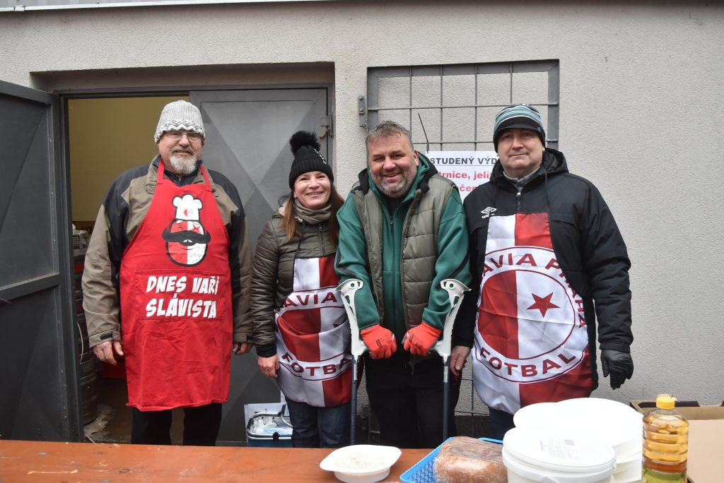 Po skončení dopoledních slavistických vepřových hodů se zástupci odbočky přesunuli právě do Domova pro seniory Rybniční a Domova se zvláštním režimem, kam seniorům přivezli jitrnice, jelita i zabijačkovou polévku a zároveň předali finanční dar ve výši 30 tisíc korun. Ten byl vybrán při tradičním zápase na Štěpána mezi odbočkou Slavie Praha a SK Strakonice 1908.