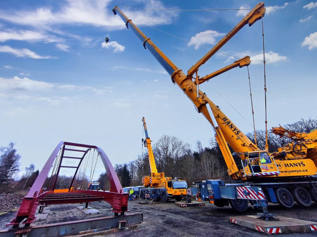 STRAKONICE/NOVÝ DRAŽEJOV – Ve čtvrtek 12. února dopoledne se v Novém Dražejově u Strakonic odehrála technicky mimořádná podívaná, kterou si nenechalo ujít několik desítek diváků. V rámci výstavby nové cyklostezky mezi Strakonicemi, Pracejovicemi a Novým Dražejovem zde těžká technika usazovala novou lávku přes řeku Otavu. Precizní manipulaci s masivní konstrukcí zajišťoval speciální těžký jeřáb s nosností až 500 tun.