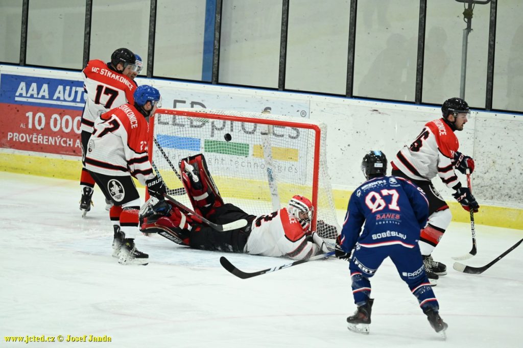 SOBĚSLAV – Soběslavský zimní stadion přivítal v neděli 18. ledna šlágr 23. kola krajské hokejové ligy, v němž se na půdě druhého Spartaku představil lídr ze Strakonic. Pokud chtěla Soběslav uchovat více než teoretickou naději na první místo po základní části, potřebovala zvítězit za tři body. Už od začátku k tomu měli domácí ideální podmínky. Strakonický útočník Růžička nasbíral hned v první třetině šest trestných minut, nicméně spartakovci Myslivce překonat nedokázali. Soběslav se dočkala první úspěšné střely až v 17. minutě po zakončení Olivera Pánka. Mladý soběslavský útočník tak otevřel cestu za hattrickem…