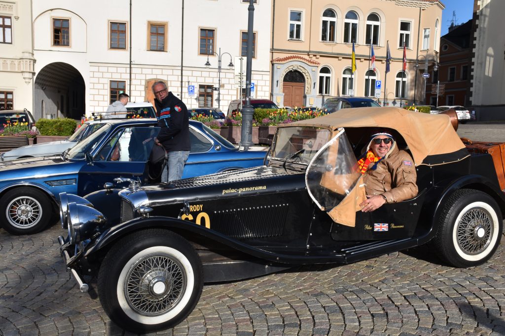 Letos se mezi veterány už mohou zařadit vozidla roku výroby 1996. Takový se na náměstí neobjevil, nejmladší byl podle startovní listiny vůz BMW 520 z roku 1992, který přijel Martin Güttner z Prahy. O svém autě mluví ve videorozhovoru stejně jako Emil Roděj, provozovatel Veteran muzea v Jílovicích. Jeho Jaguar SS 100 je replika z roku 1973 původního vozu z roku 1937. „Repliky se začaly v Americe vyrábět, aby tyto krásné tvary byly dostupné širší veřejnosti. Mají pozměněnou koncepci, původně to byl šestiválec s motorem vpředu, v replice je motor značky Volskwagen a je uložený vzadu,“ zmínil Emil Roděj, který dnešní soutěž jede s tímto vozem a spolujezdcem Jaroslavem Myslivečkem. Také víc přibližuje na videu. Jílovické muzeum chystá na letošní červenec sraz replikových aut.