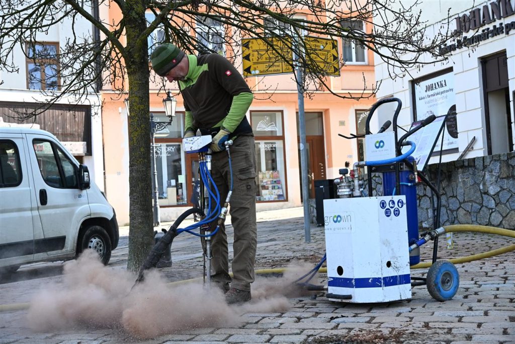 PÍSEK – Ke čtyřem jasanům, které rostou na předpolí u Kamenného mostu v Písku, aplikovali odborníci pomocí unikátní metody zvané půdní injektáž speciální směs se živinami. Ta by měla v dalších letech podpořit vitalitu stromů a jejich růst.