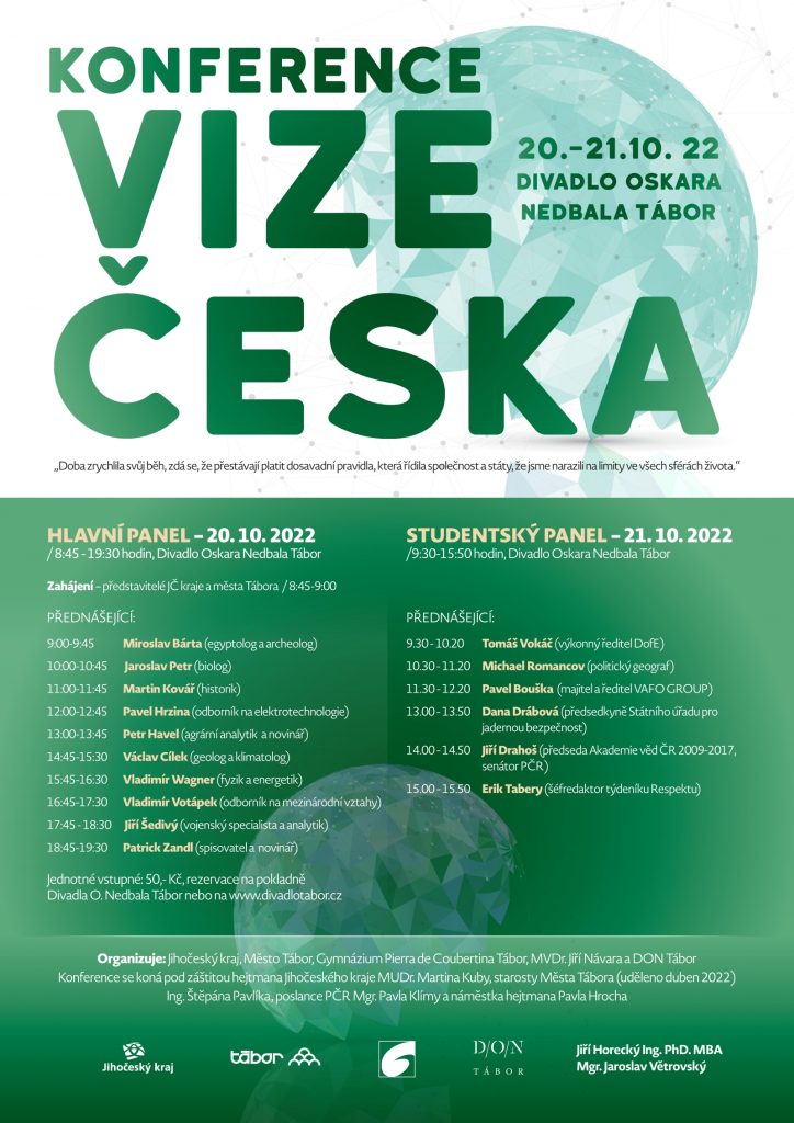 Konferenci pořádají Jihočeský kraj, město Tábor, Gymnázium Pierra de Coubertina Tábor a Jiří Návara.
