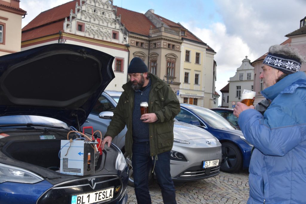 Hlavním iniciátorem akce byl emeritní náčelník zmíněné asociace Jaromír Vegr. Řekl, že předchozích pět let se majitelé těchto aut zaměřovali na přesvědčování veřejnosti, že elektromobily jezdí i v zimě. Teď byl připraven příchozí svézt kolem náměstí, aby viděli, že elektromobil okamžitě nastartuje do plného výkonu a jeho provoz je absolutně tichý.