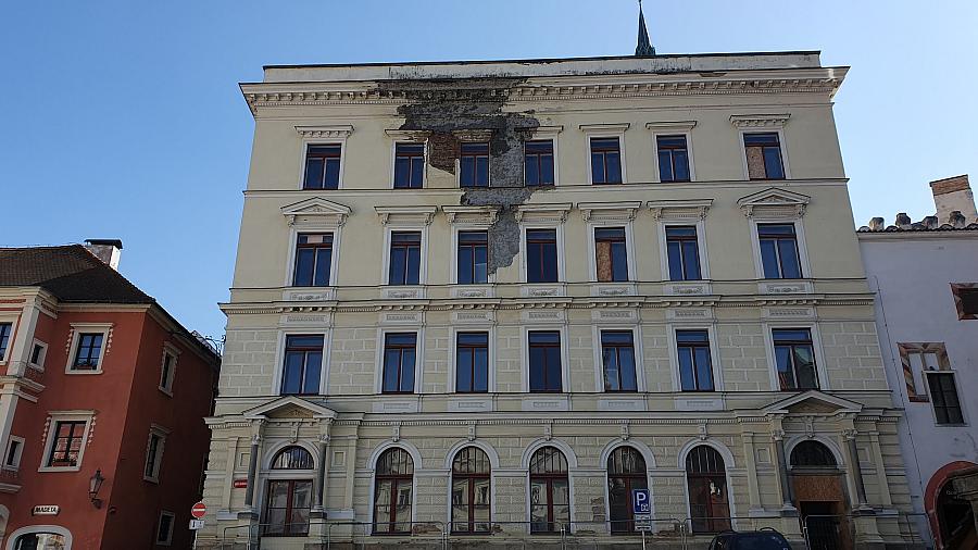 Začala rekonstrukce bývalé spořitelny na náměstí Svornosti v Krumlově