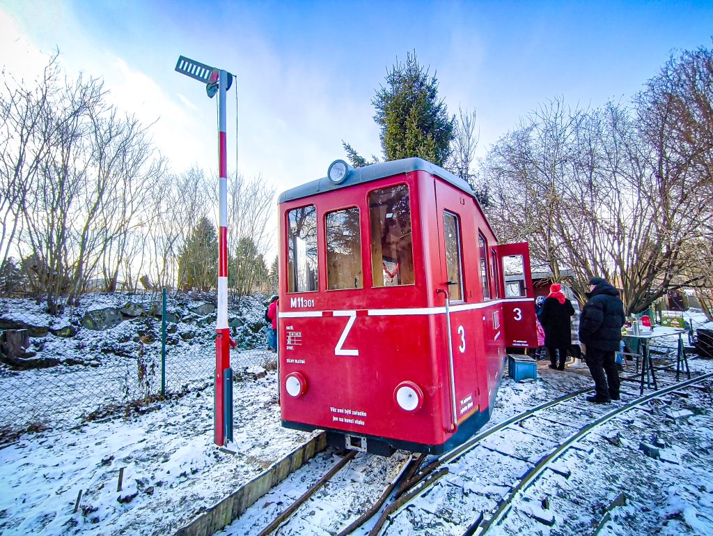 „Poprvé jsme otevřeli v květnu 2023. Tehdy jsme vůz ještě tlačili po kolejích ručně,“ vzpomíná Pokorný. Během následujícího roku a půl ale model výrazně zdokonalil. Do motorového vozu přibyl pohon, baterie pro startování i osvětlení a také druhé stanoviště řízení, takže se dá jezdit z obou konců. „Postupně to pořád předělávám a vylepšuju,“ říká s tím, že technika ho občas potrápí – například když zrovna v den setkání 30. prosince spadl řetěz pohonu a závada se opakovala. Definitivní řešení si proto nechává na teplejší jarní měsíce.