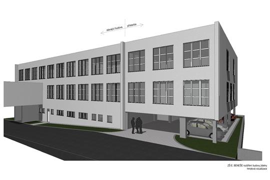 „V areálu školy vznikne třípodlažní stavba – první nadzemní podlaží zůstane otevřené a budou v něm zachována parkovací místa, na sloupech pak budou vynesena dvě patra. Prvním se zvětší prostor školní jídelny, jejíž kapacita se díky tomu navýší o 80 míst na celkových 200, ale také kuchyně a vzniknou tu i výukové školní kuchyňky,“ řekl místostarosta Michal Přibáň.