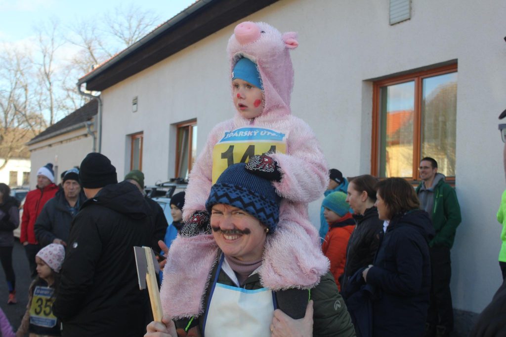 Nejdřví se pustily do závodu dětské kategorie. Těch bylo několik. Děti běžely návsí. Nejmenší děti absolvovaly pouze jeden okruh, starší okruhy čtyři. Děti v cíli podporovali rodiče.